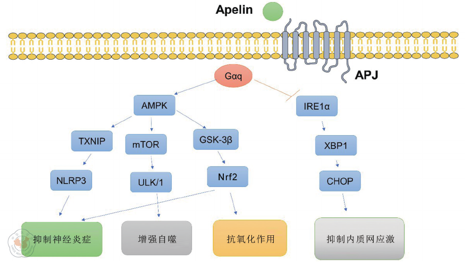 Chapman NA, Dupré DJ, Rainey JK.The apelin receptor:physiology,pathology,cell signalling,and ligand modulation of a peptide-activated class A GPCR[J]. Biochem Cell Biol, 2014, 92(6):431-440.DOI: 10.1139/bcb-2014-0072.